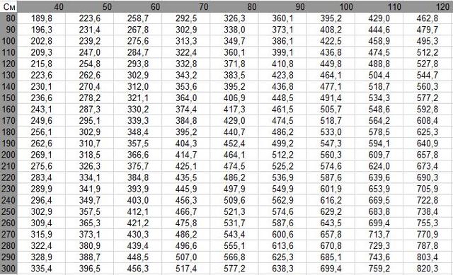 Роздрібна ціна по розмірам для 4 категорії плісе (вказана в злотих) для систем AB-11 та AB-41:
